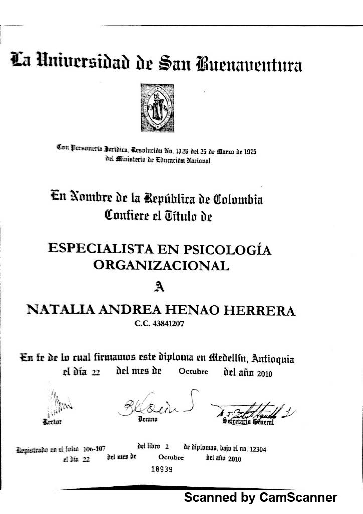 - Especialista en psicologia Organizacional